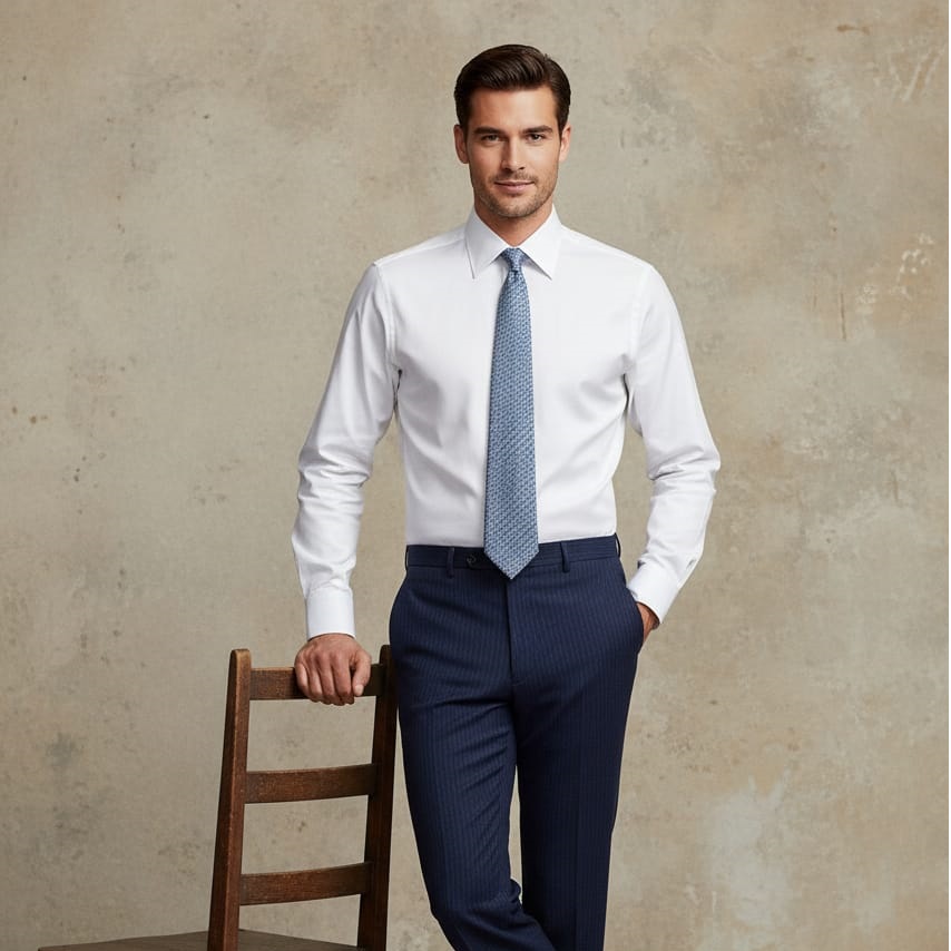 חולצות 100% כותנה ללא גיהוץכותנה סופימה, Pinpoint, לבן וצבעוני