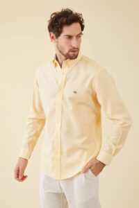 חולצה מכופתרת לגבר בצבע ירוק להופעה המשלבת ספורט ואלגנט מתאימה ליום יום ולארועים