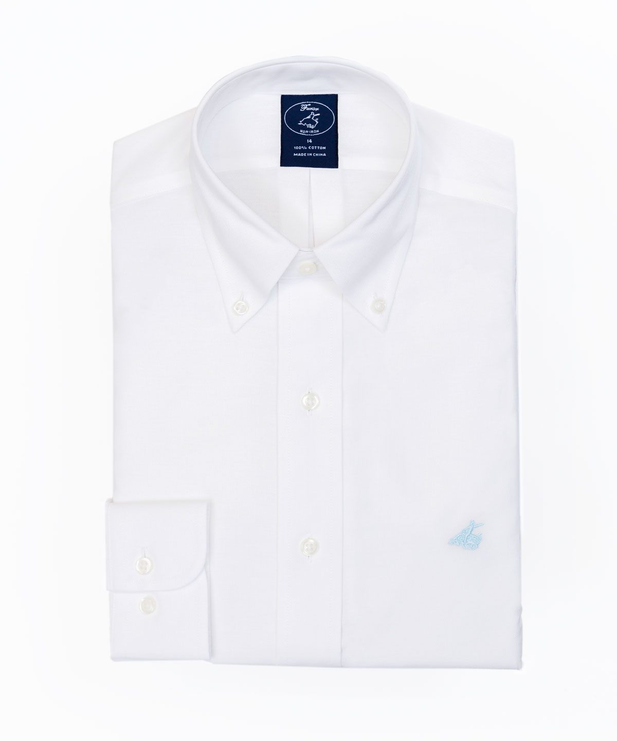 חולצה לגבר לבנה מבד אוקספורד צוארון כפתורים 100% כותנה עם לוגו פורור בצבע טורקיז בחזית